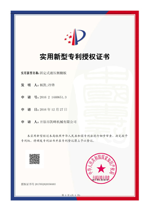 實(shí)用新型專利授權(quán)書